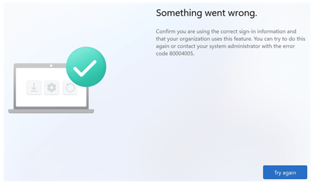 It starts with the most frustrating kind of failure. A user signs in during Autopilot, the company-branded login appears, authentication succeeds, and then Windows immediately displays the generic OOBE message: “Something went wrong with error 80004005.”