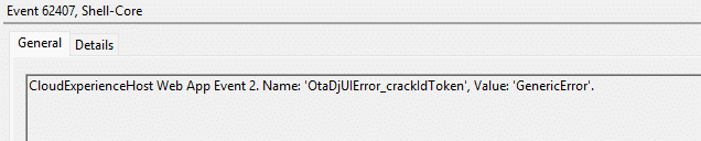 On affected devices, you’ll see CloudExperienceHost web app events pointing straight at the Hybrid join web app, OtaDJ. The three event names already tell you what is going on: