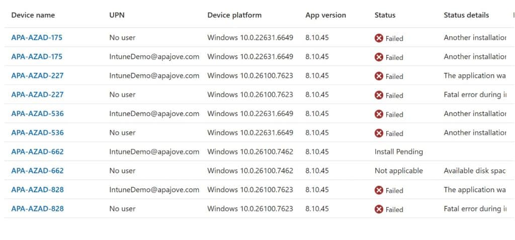 Deployment statistics from Intune can lag, and they often reflect installation success, not actual detected state.