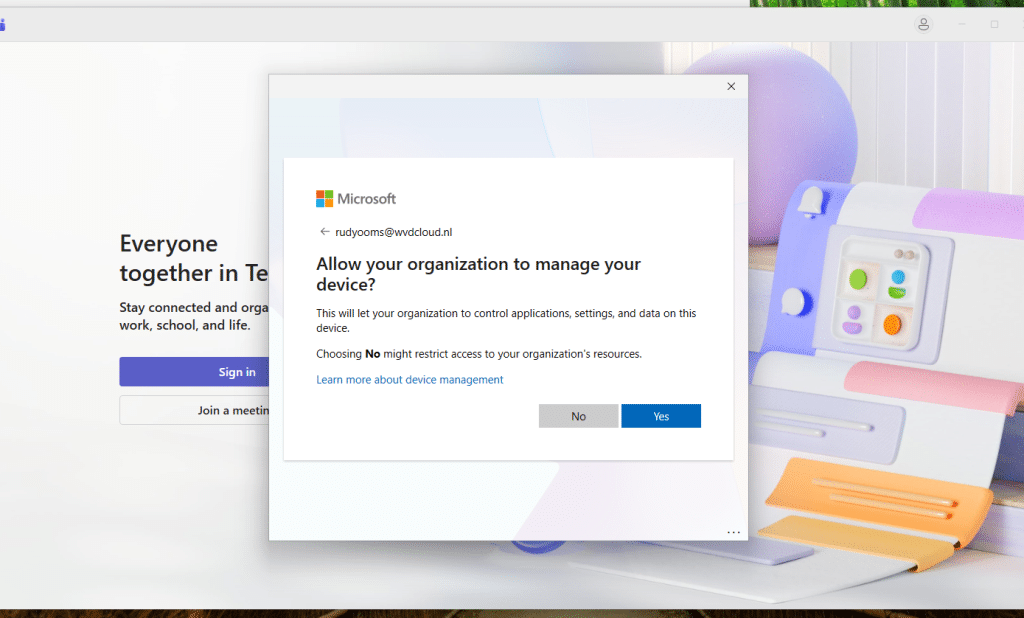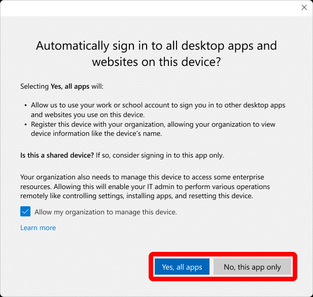 Windows has a habit of prompting users the moment they add a work or school account: “Allow my organization to manage my device.” Most users just click straight through it, but that tiny checkbox has caused years of accidental MDM enrollments, mixed-tenant registrations, and licensing failures. It’s been a steady source of confusion and frustration for end users and a steady source of cleanup work for IT admins.