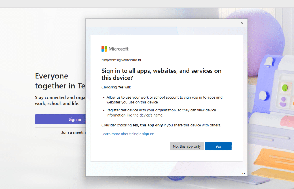 What actually happened was slightly different and perfectly shows why this toggle is still labeled public preview. The device was already registered in my Entra tenant. From there on, I added a second account from a different tenant via Teams.