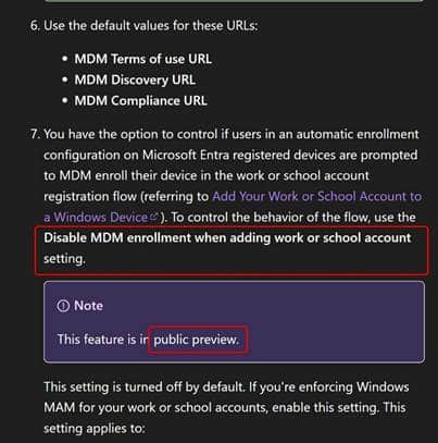 The new Public Preview toggle brings long-requested clarity to the Windows account-add scenario. From now on, administrators decide whether adding a work or school account should trigger device management or not. The days of mysterious enrollments, conflicting tenant metadata, and accidental device takeovers are finally numbered.
