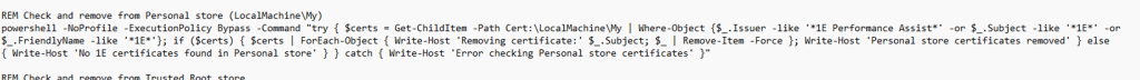 The idea was simple: remove any 1E-related certificates used by the old Performance Assist service.
