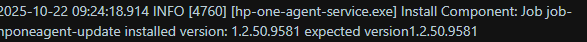 The HP OneAgent logs confirmed exactly what happened: Install Component: job-hponeagent-update installed version: 1.2.50.9581 expected version: 1.2.50.9581