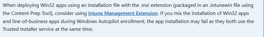 We know mixing MSI-based LOB apps with Win32 apps isn’t recommended. It can break detection, dependencies, or uninstall logic.
