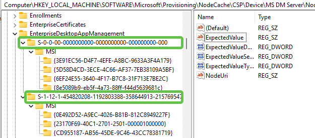 After that, the device writes an entry to: HKLM\SOFTWARE\Microsoft\EnterpriseDesktopAppManagement\<SID>\MSI\<ProductGUID>