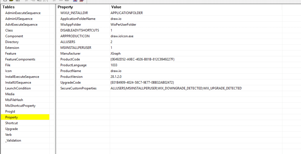 We then tried the same with draw.io, which we knew was getting installed in the localappdata when selecting the user install context. The moment we opened the draw.io MSI