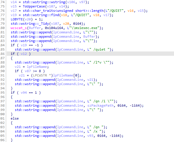 If it’s User, it duplicates the user’s token and uses CreateProcessAsUserW to start the installer inside the user’s session.