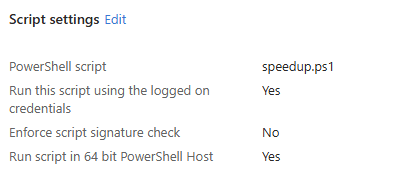 I uploaded the PowerShell script to Intune (see below) and configured it to run in the system context.