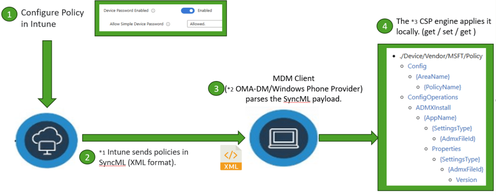 Each setting in Windows could be represented as a URI path in that tree. For a deep dive on how the MDM client uses this model in policy delivery, see the blog by Patch My PC titled The Truth About the 8-Hour Intune Sync (…).