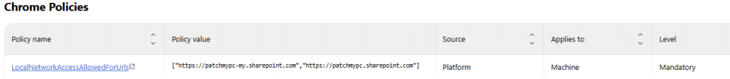 It started as one of those situations where nothing is technically broken, yet something clearly does not add up. On several managed devices, LocalNetworkAccessAllowedForUrls suddenly appeared under edge://policy. The funny thing…Chrome showed the same thing.