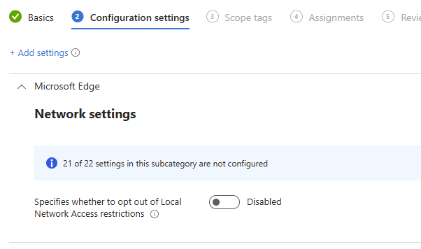 If you want this behavior to stop feeling spooky, deleting registry values and hoping they stay gone is not the answer. Ownership means manually configuring the LocalNetworkAccessAllowedForUrls in an Intune Settings Catalog policy for both Edge and Chrome (ADMX or PowerShell). Once those entries exist, the OneDrive repair logic detects them and permanently backs off.