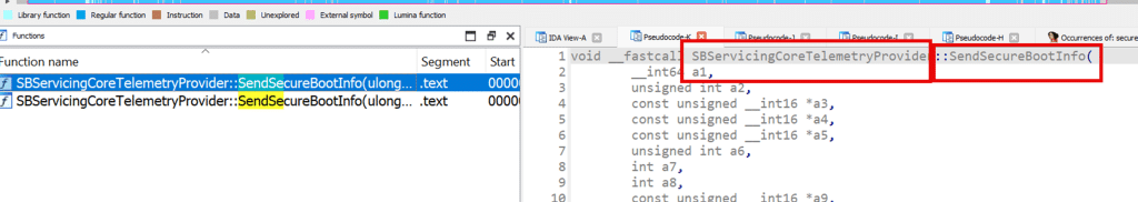 The name (SendSecureBootInfo) alone changes the direction of the investigation. This function is explicitly about sending Secure Boot Info to somewhere.