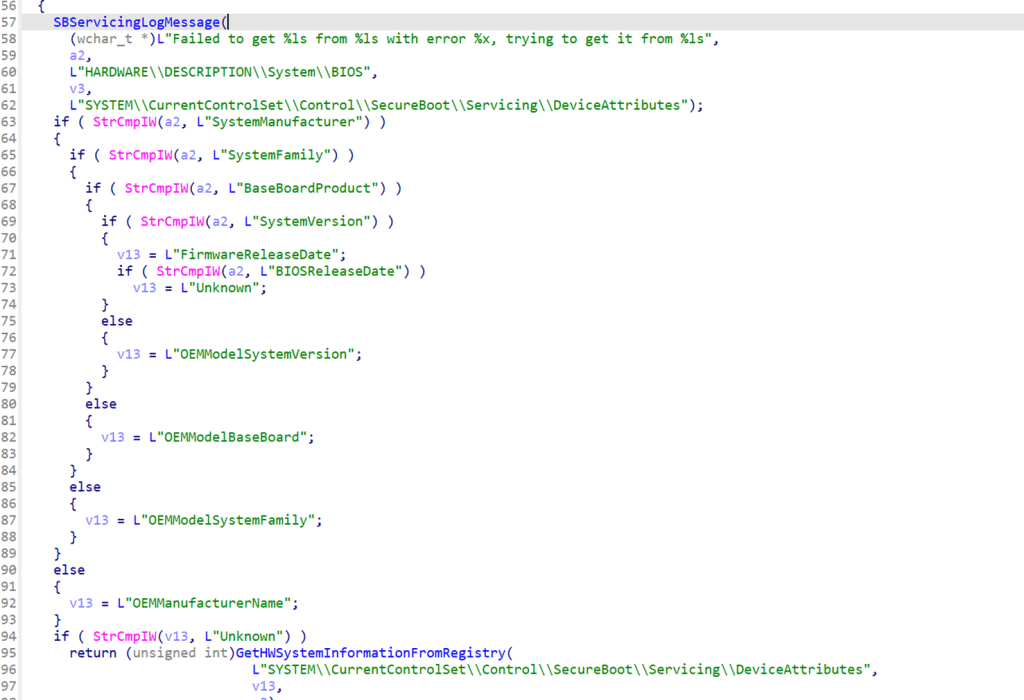 This is not only about visibility. This information determines whether Secure Boot updates are safe to attempt at all. Certain platforms are deliberately excluded. Others require guarded handling. Those decisions are embedded directly in the servicing logic. Only once the platform context is established does Windows move on to Secure Boot itself.