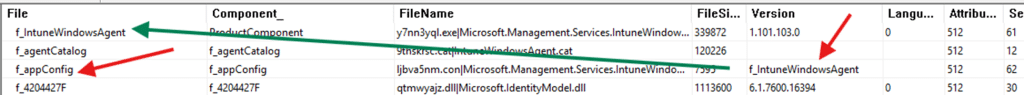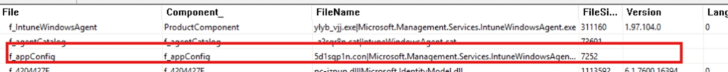That is exactly the kind of shift that showed up in the 103 MSI export. The config stopped behaving like its own independent tracked file and started following the main Intune Windows Agent EXE instead. At the same time, the component no longer used the config file itself as the KeyPath. In practical terms, Microsoft took the config out of the driver’s seat.