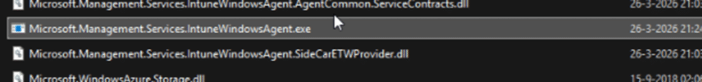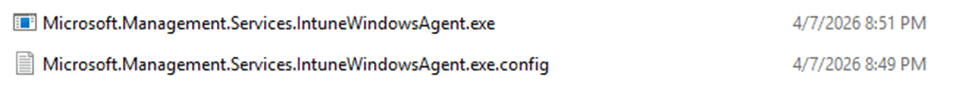 The one that caused the IME to break was: Microsoft.Management.Services.IntuneWindowsAgent.exe.config. Once that config file drifts out of sync with the assemblies next to it, token handling could fail with errors like IDX12729 and 0x80131040, and the Win32 user app flow never really got started. That was the first chapter.