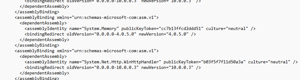 In the older IME packages, Microsoft.Management.Services.IntuneWindowsAgent.exe.config didn’t have a version configured.