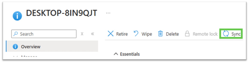 As mentioned before, performing a remote sync of the device in the Intune portal does not contact the device directly.