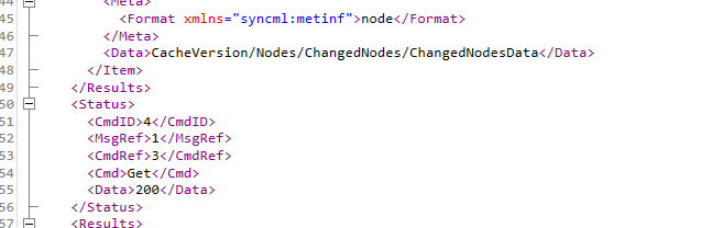 The deviceenroller now starts an OMA-DM session. At that moment, omadmclient.exe takes over. SyncML is exchanged, the change nodes (policies) are evaluated, and changes are applied.(get-set-get)