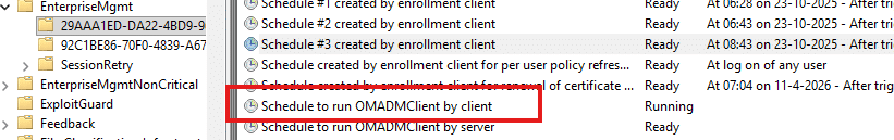 If your custom scheduled task never fires, the problem is in the push delivery path. If it is executed every time but policies still lag, the issue is in the later stages (deviceenroller queue logic, OMA DM session, or IME timing), not in the push itself.