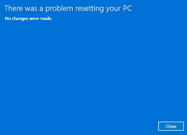 After the first phase of the offline reset, the device can restart back to the desktop and show the message, “There was a problem resetting your PC. No changes were made.”