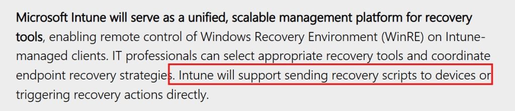 Something that lets you trigger remediation when the device is already past the point of no return? Well… something interesting just showed up inside the Intune portal code: Windows Recovery and Remediation.