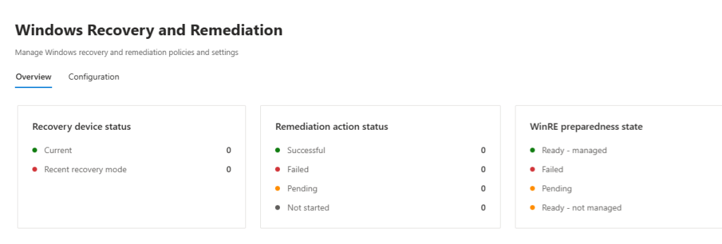 However, upon closer examination, it still feels somewhat unfinished. The foundations are in place, but only partially. The detection and repair logic exists, yet the management and policy layer (remediation) is missing. There are no Intune recovery controls, no clear way to define what the remediation should do, and no insight into whether WinRE is actually ready to respond when needed.