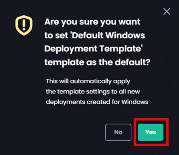 You can only configure one template as the default per OS platform. If you want to choose a different template as the default, click the **Default** slider beside the relevant template and confirm you want to set that one as the default instead.