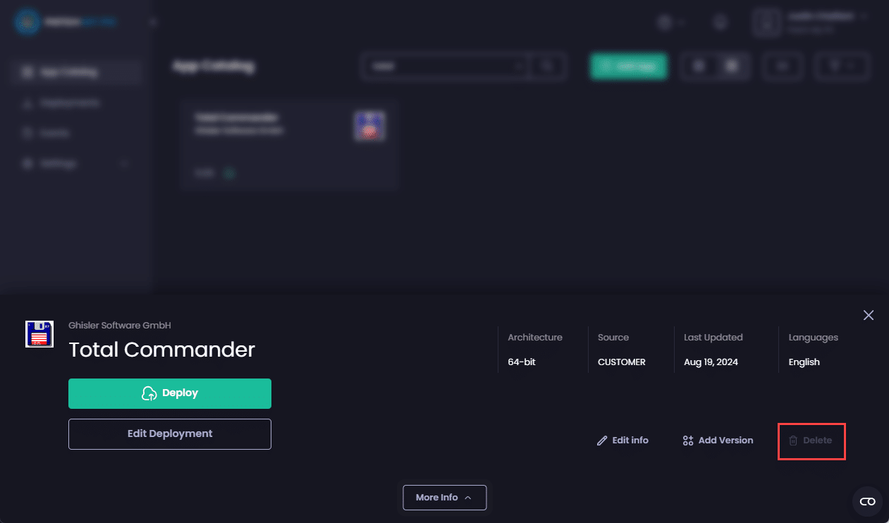 I am trying to delete an app from the Patch My PC (PMPC) Cloud App Catalog.