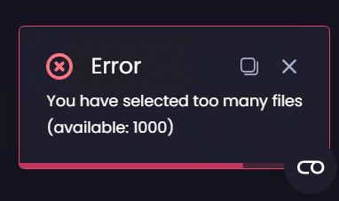 If you try to upload more than 1000 files at once, the upload will fail with the error message