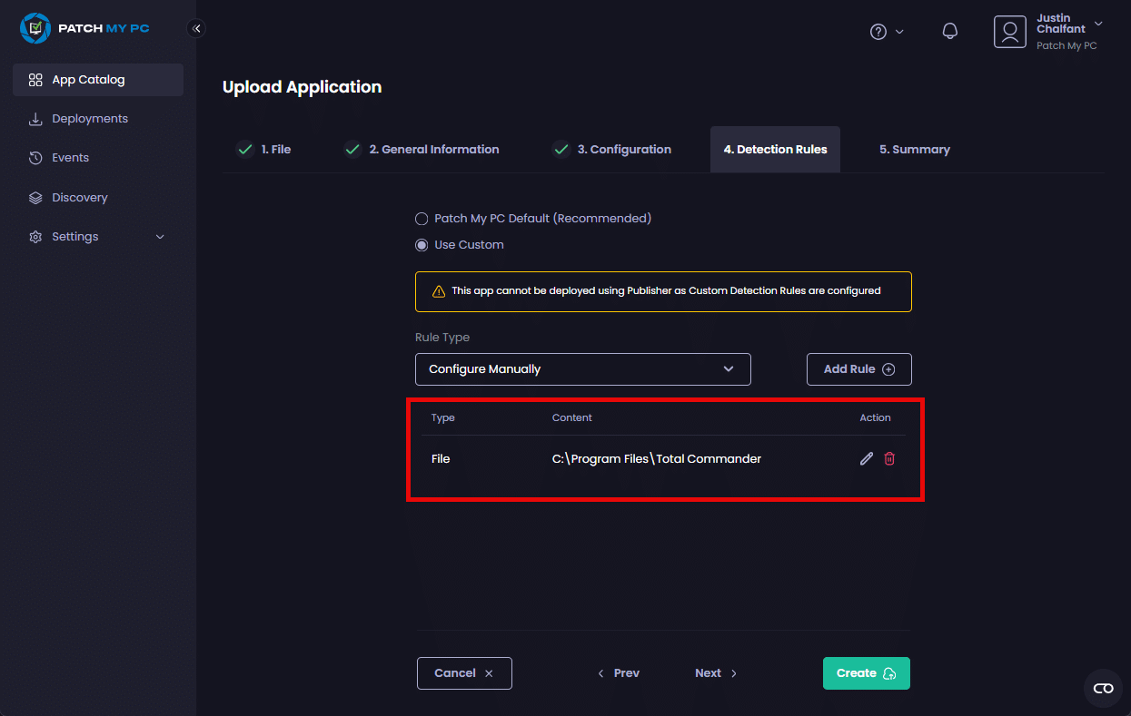 * Should not create and manage detection rules in the Intune admin center as they will not be detected and shown in the PMPC Cloud portal.