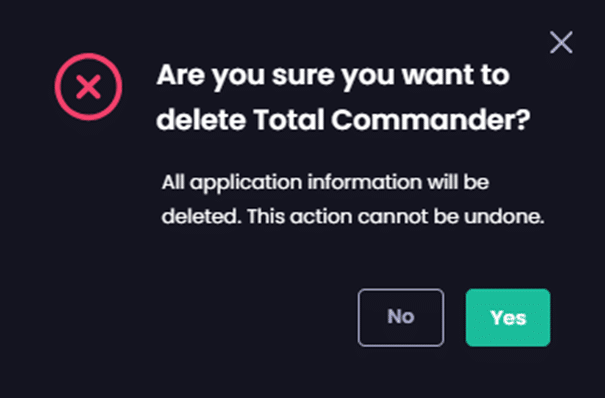 On the Are you sure you want to delete <app_name> dialog box, click Yes.