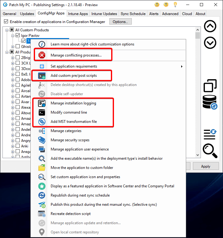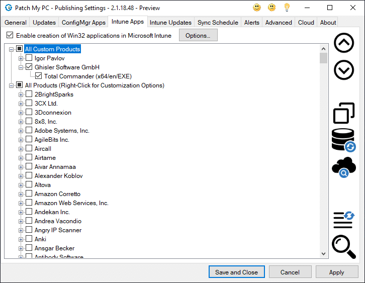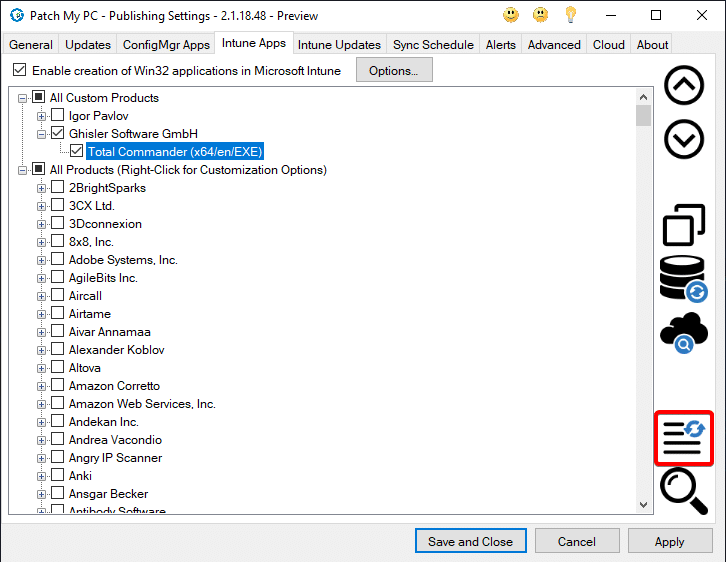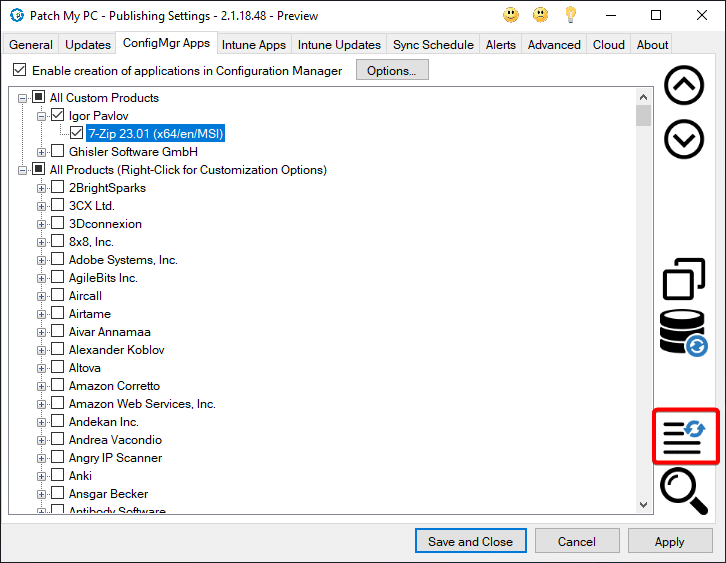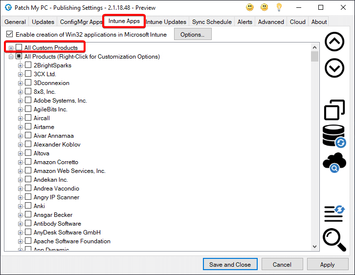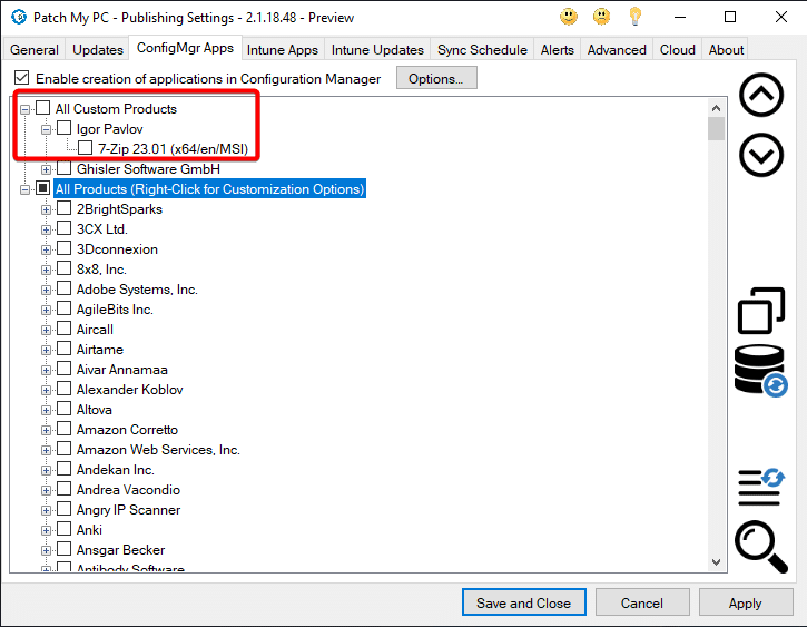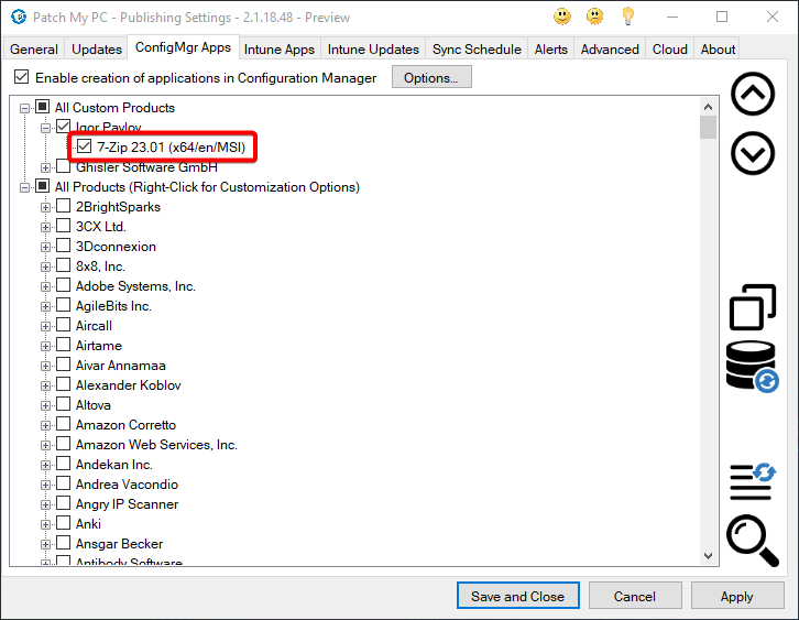 Enable the Custom App by checking the box next to the app, like any other product in the Patch My PC Catalog