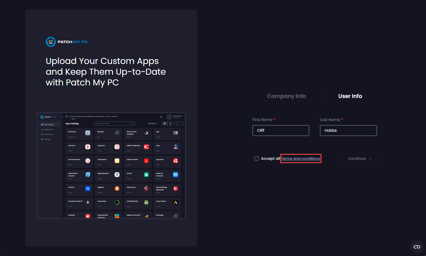 - If you agree with our terms and conditions, check the Accept all Terms and conditions checkbox.