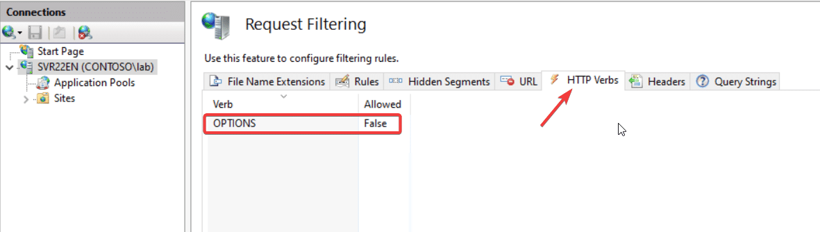 For an existing IIS Server – ‘OPTIONS’ HTTP Verb **must not be BLOCKED at server level.**