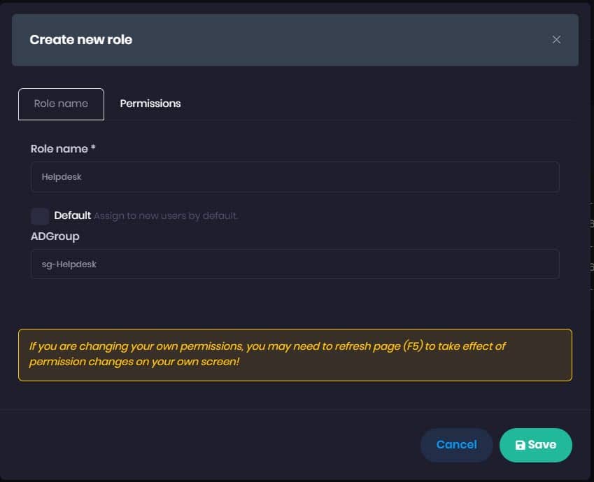 Once this is configured, we can assign an existing role to an Active Directory Group, or create a new role for a group. N.B. There is currently no support for nested groups.