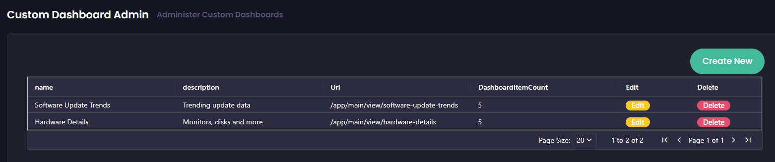 To modify an existing custom dashboard, we navigate to the ‘Custom Dashboards’ node in the ‘Administration’ section and click the ‘Edit’ option.