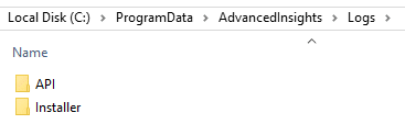 The contents of the following directory are collected, which consist of the ‘AdvancedInsightsApi.log’ and any ‘AdvInsights_Verx.x.x.zip’ installer logs.