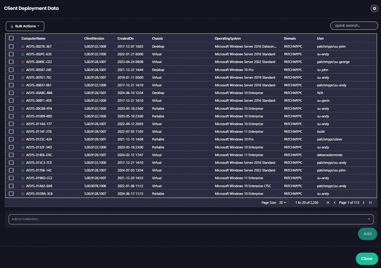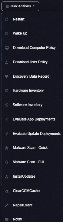 From this table you are able to do several different functions. You have the ability to multi select devices and perform one of the many built-in right click options available to you in the Configuration Manager Console and also some of the PatchMyPC actions too.