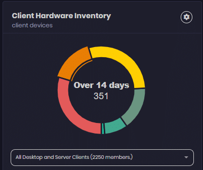 In this Donut chart you can can see how long is been since devices have submitted their hardware inventory data to Configuration Manager.