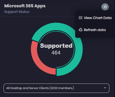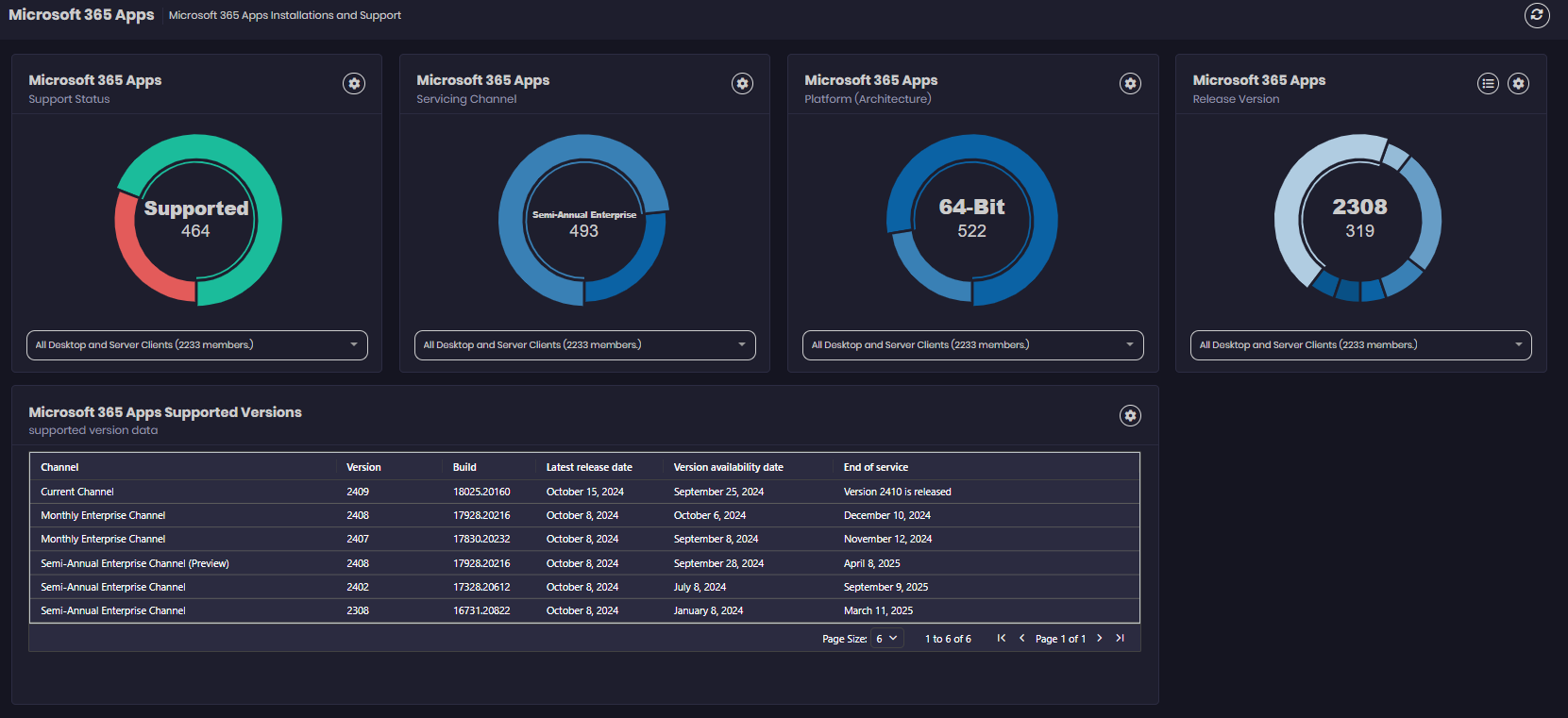 On this dashboard we show you data with regards to the Microsoft 365 Apps. The information shown in the donut charts are: