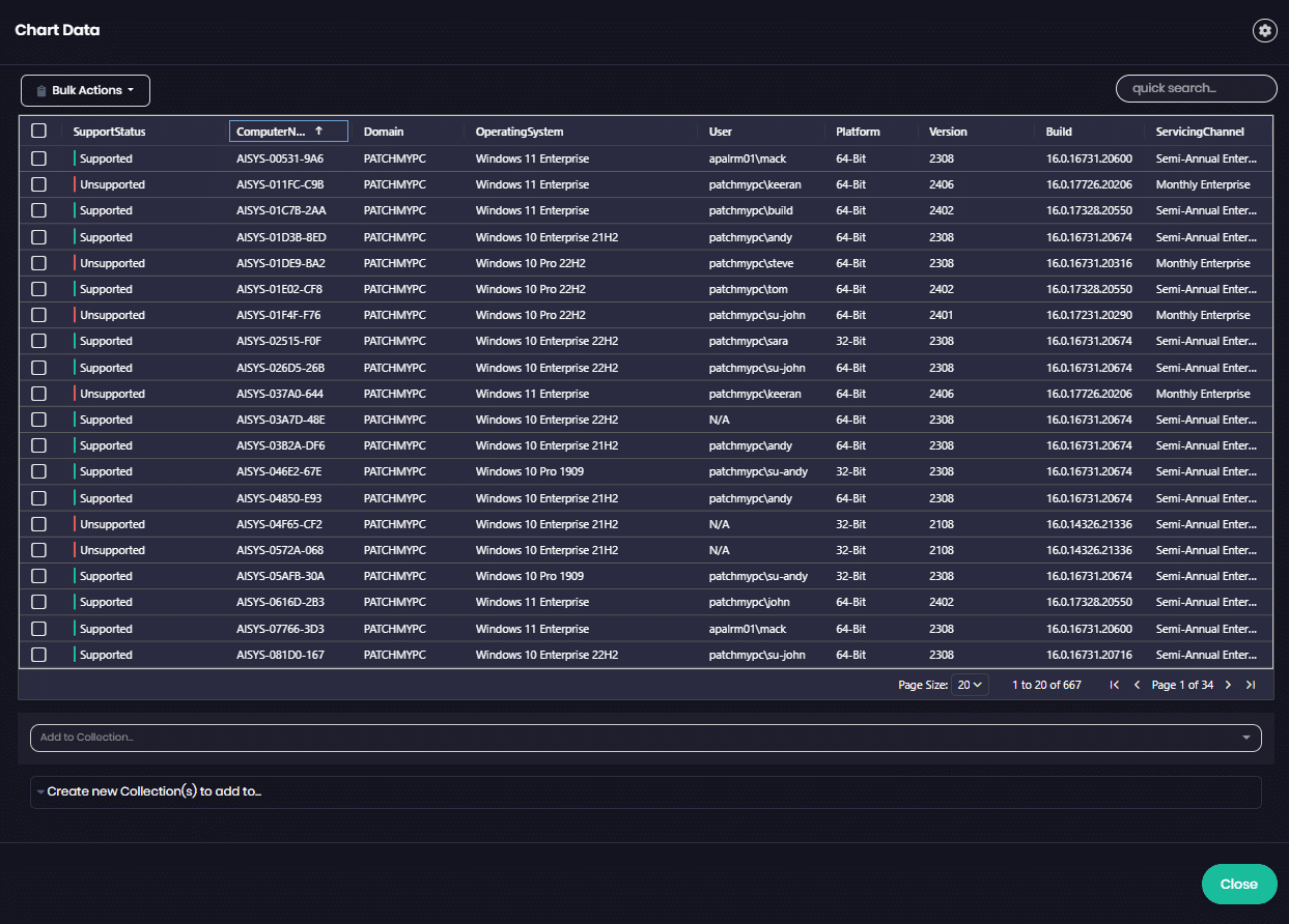 Microsoft 365 Apps Supported Versions data is collected from the following URL’s: