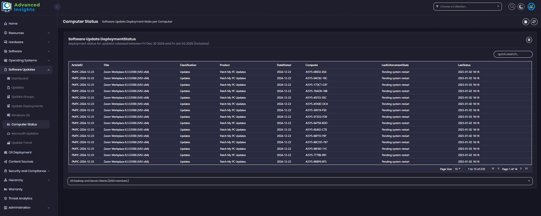 In this dashboard you can see the last installation status for deployed software updates for computers needing the update.
