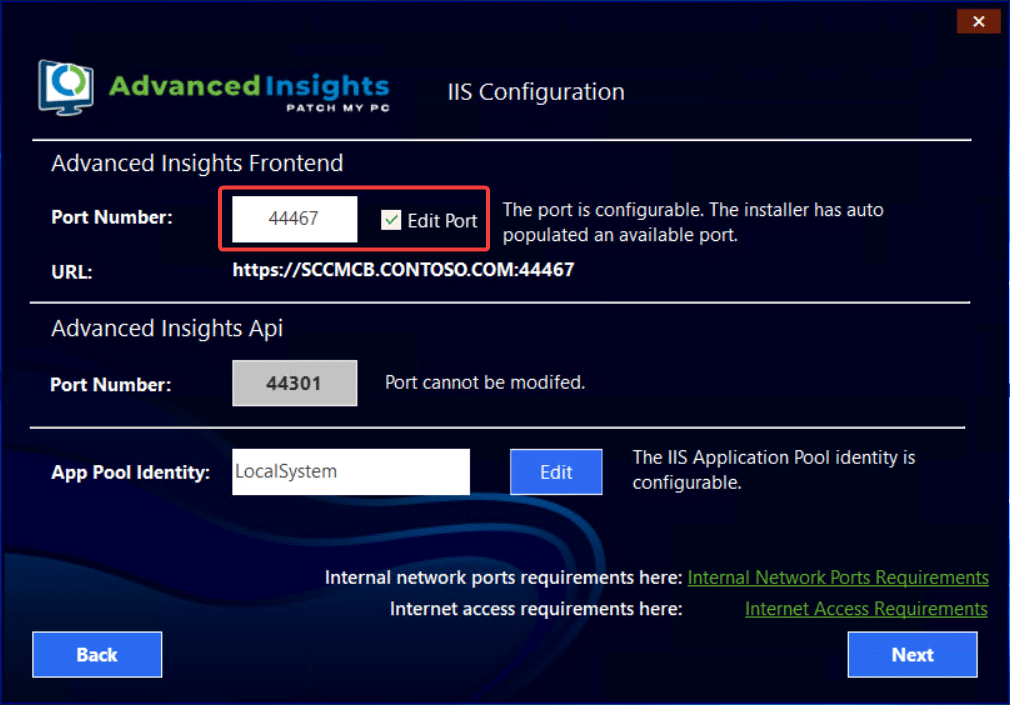 Click ‘Edit port’ in the ‘Advanced Insights’ section and enter a new port number, then click ‘Next’