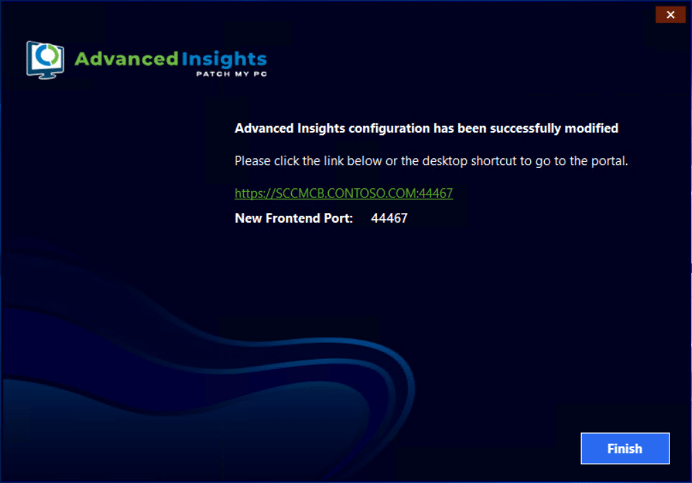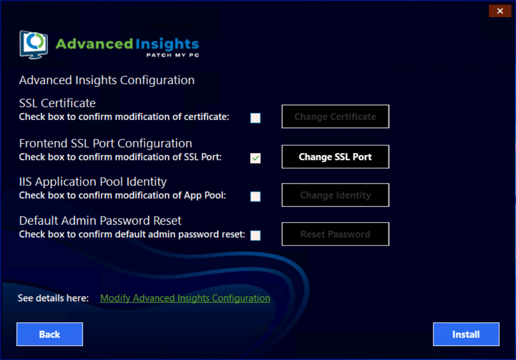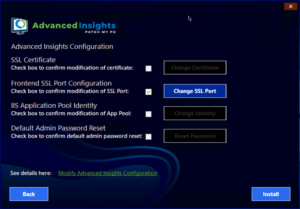 This section describes the steps required to change the frontend network port used for an existing Advanced Insights deployment.