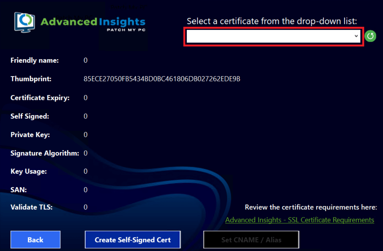 Review the SSL Certificate requirements here: [insights-ssl-certificate-configuration.md](../download-and-install-insights/insights-ssl-certificate-configuration.md “mention”)