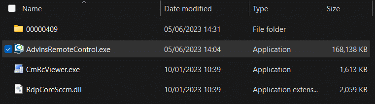 3. Copy CmRcViewer.exe RdpCoreSccm.dll and the relevant locale folder into the C:AdvInsRemote Control folder too.
