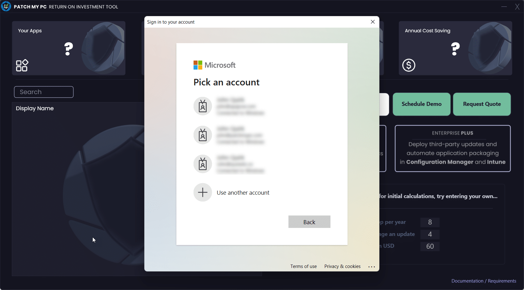 Clicking the Request Quote or Schedule Demo buttons will take you to the Patch My PC website to complete a short form requesting one of these services. Where possible we will pass the parameters from the tool into these forms to save you some time.
