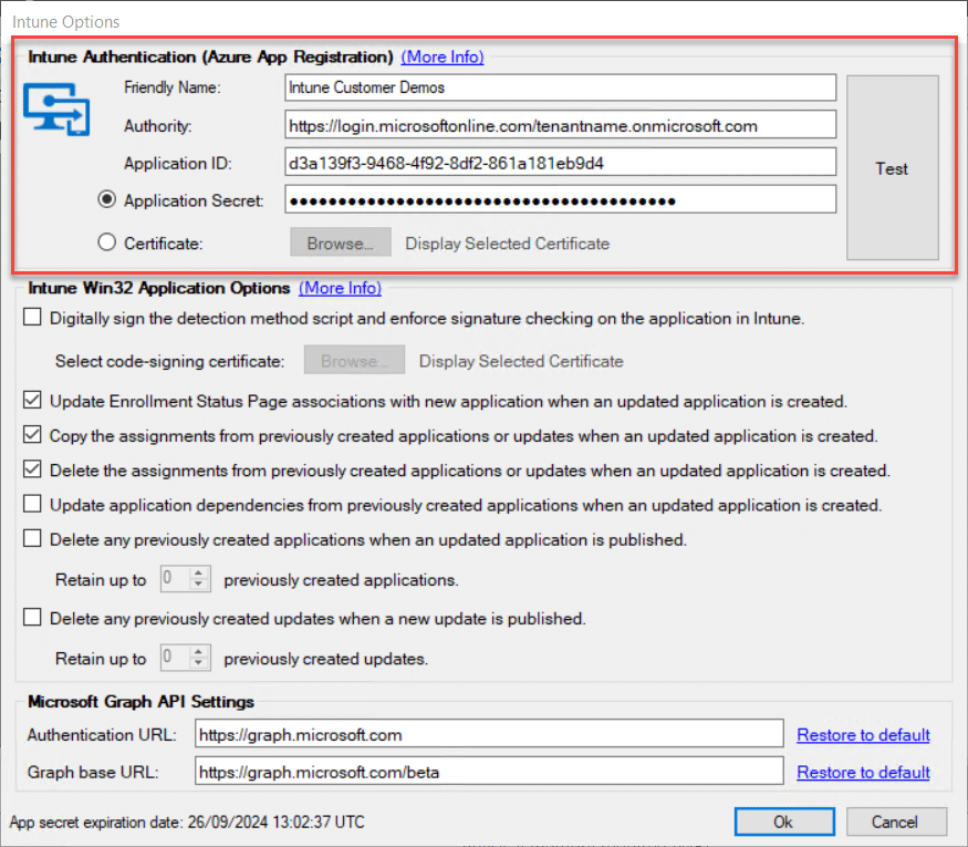 Now, it is time to go to the Intune Options window of the Publisher Patch My PC Publisher to configure the following:-