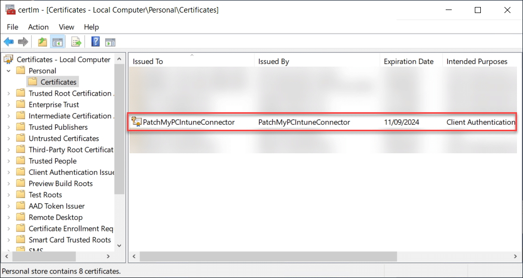 Verify the certificate was created successfully in the Local Machine Personal Certificate Store by running certlm.msc.